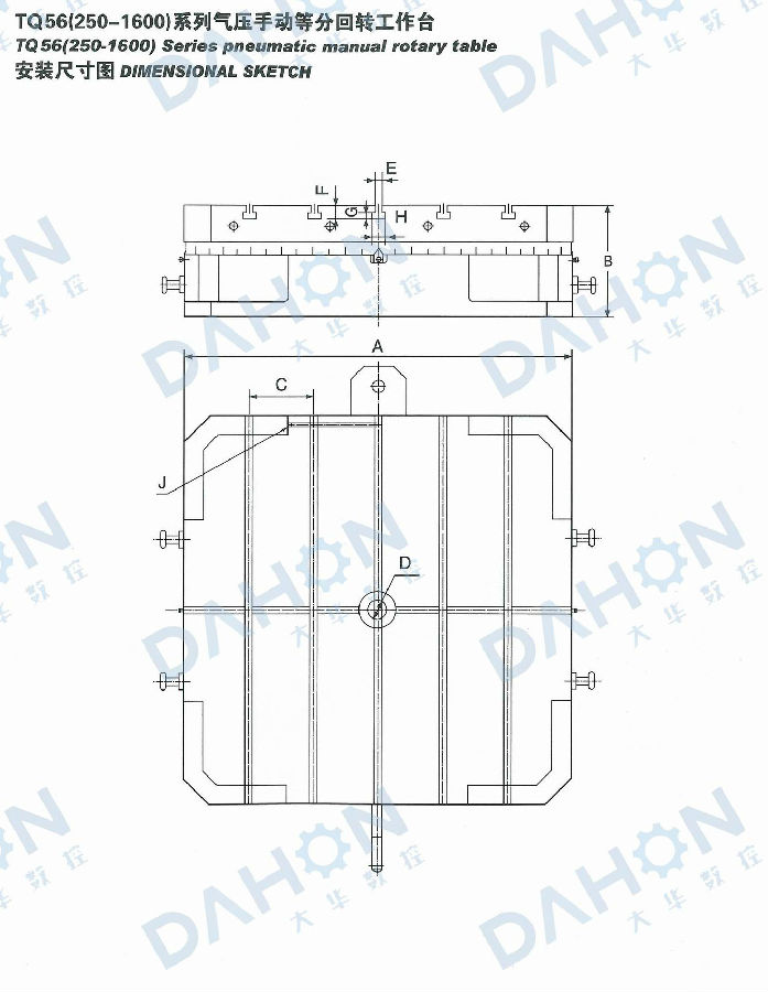 TQ56系列氣壓手動(dòng)等分轉(zhuǎn)臺(tái)是以端齒盤(pán)為分度元件,氣壓抬起、手動(dòng)轉(zhuǎn)位的高精度等分轉(zhuǎn)臺(tái)。它轉(zhuǎn)動(dòng)力矩小、承載能力大、剎緊可靠,分度精度可達(dá)10",重復(fù)性3",適用于各類(lèi)鏜、銑床、磨床等高精度加工場(chǎng)合。(可根據(jù)用戶需要設(shè)計(jì)制作其他規(guī)格)