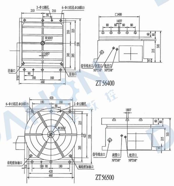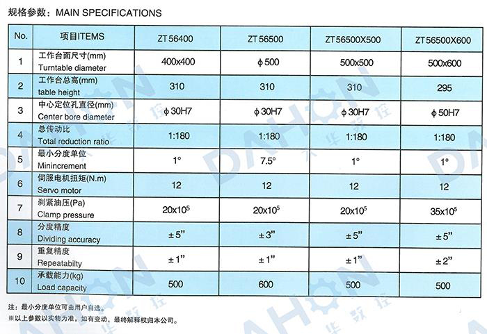ZT 56 series NC indexingrotary table can be used on NC milling machine and machine center for carrying out equal division.It is driven by servo motor and mechanical rotary table with non-lifting Hirth coupling.