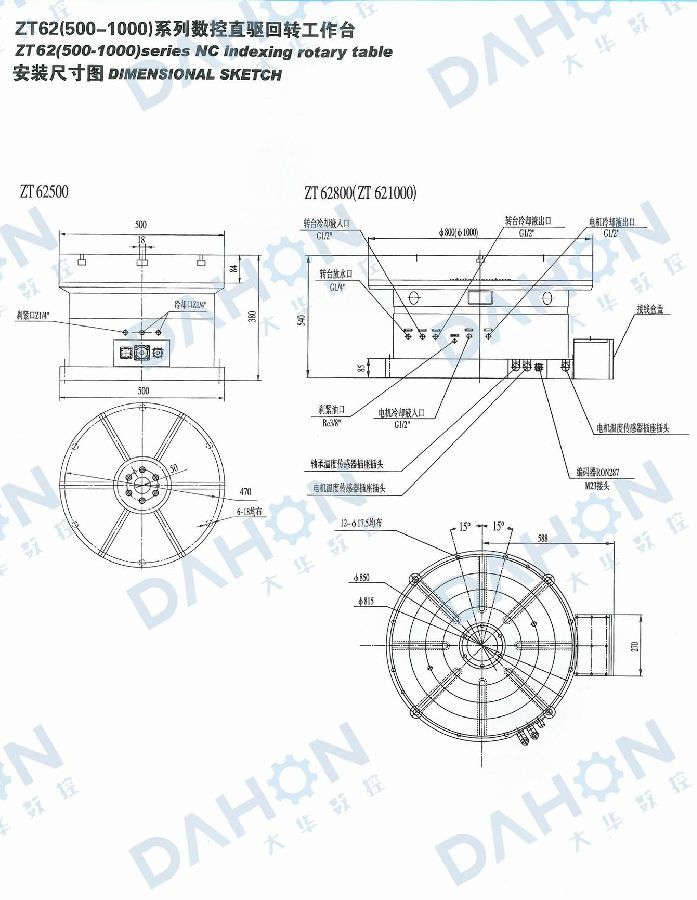 ZT62數控直驅回轉工作臺采用大扭矩力矩電機直接驅動,編碼器為反饋信號,可實現高精度的旋轉定位,是數控鏜銑床和加工中心的理想配套附件。工作時,在主機相關控制系統(tǒng)控制下,能夠完成與主機相協調的各種必需的分度回轉運動,實現等分、不等分的連續(xù)孔槽、曲面的加工,且達到較高的精度。