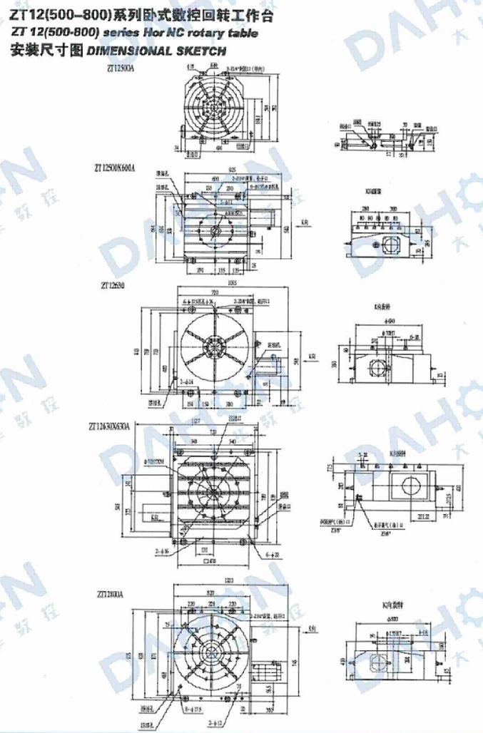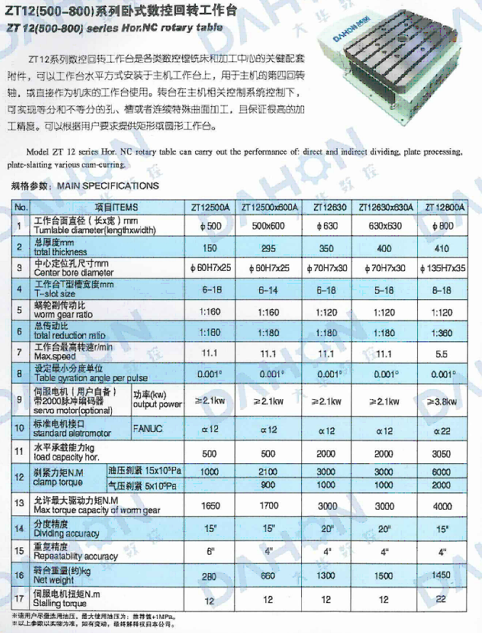 Model ZT 12 series Hor.NC rotary table can carry out the performance of: direct and indirect dividing,plate processing, plate-slatting various cam-curring.
